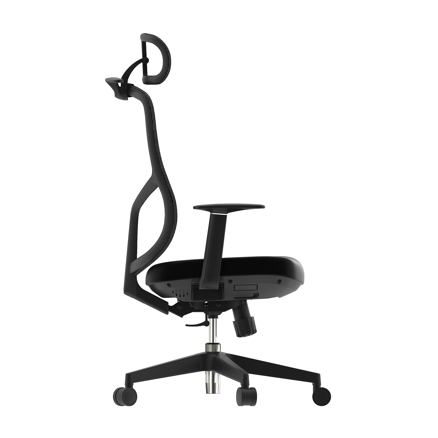 1. Headrest: 3D functional headrest, adjustable for lifting and multiple angles, black PA+GF headrest